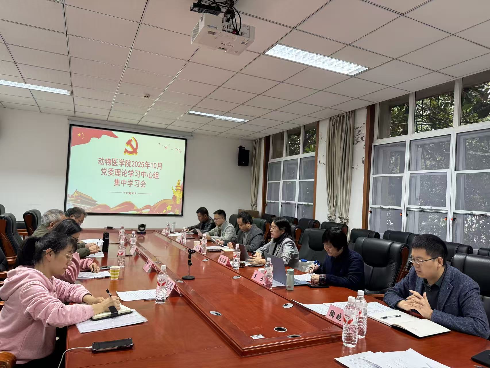 2025年10月29日,动物医学院党委理论学习中心组在37教219会议室召开本年度第八次集中学习会。西南大学党委委员、经济管理学院书记卢跃进莅临指导,学院党委书记李海燕主持会议。