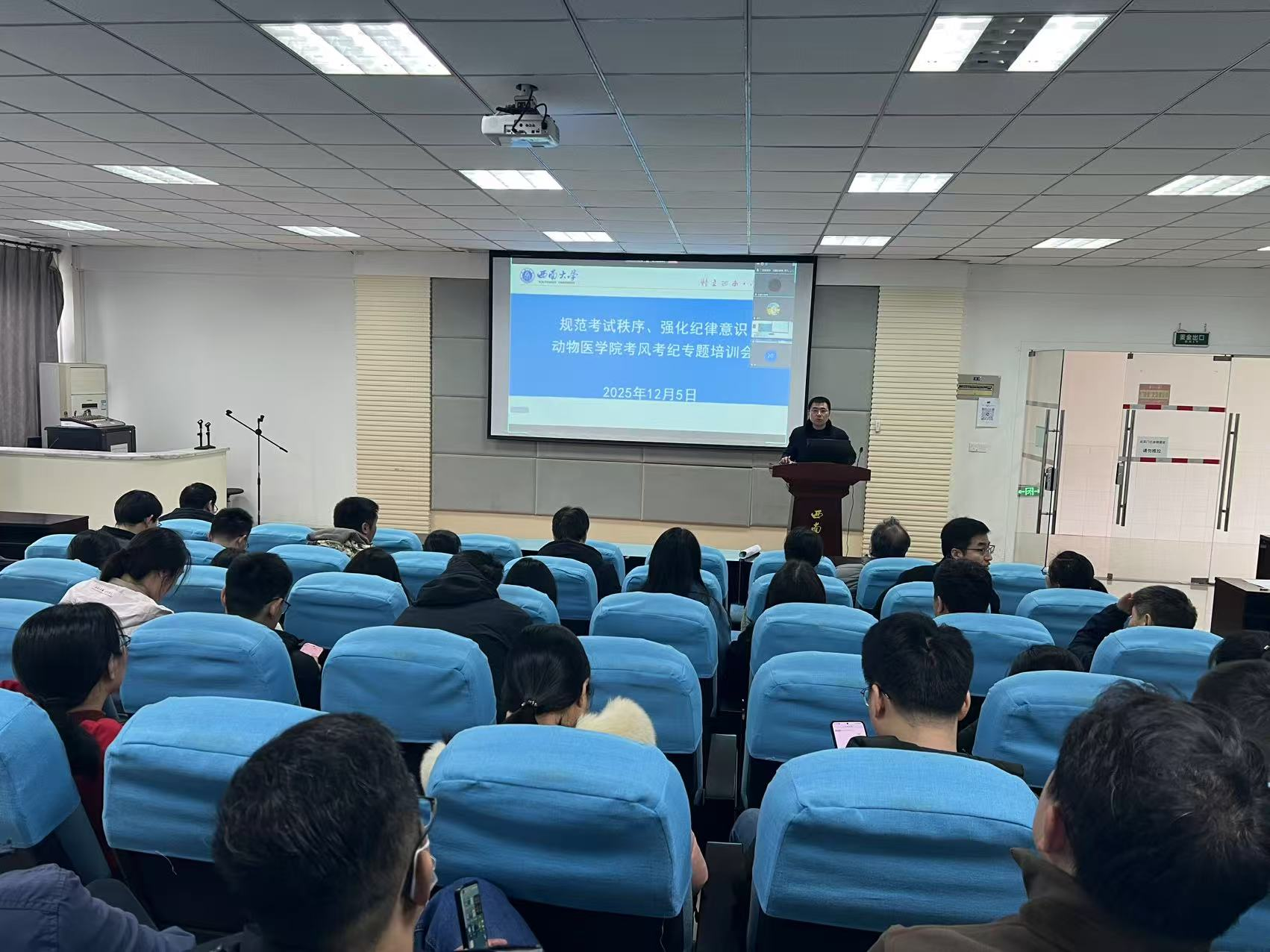2025年12月5日,动物医学院在荣昌、北碚两校区同步召开2025年第十一次教职工政治理论学习会议暨全体教职工大会。会议聚焦重要讲话精神和文件要求,深入传达学习习近平总书记重要讲话,并结合学院实际部署期末重点工作。学院党委副书记、纪委书记罗丹主持会议并作专题领学。