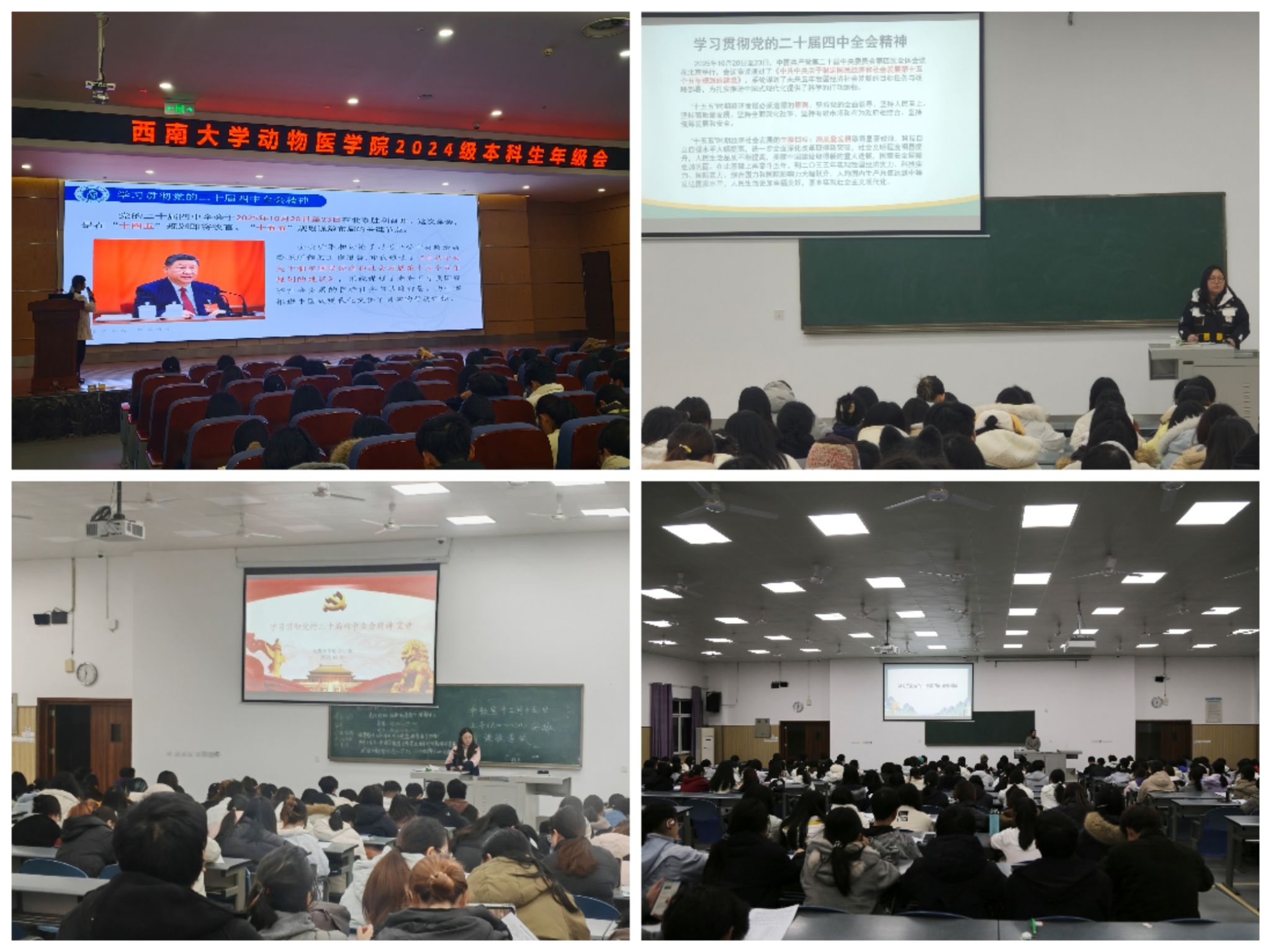 为深入学习贯彻党的二十届四中全会精神,动物医学院于12月统筹推进多维度宣讲活动,实现学生群体100%全覆盖,在全院营造出“学全会、悟精神、践行动”的浓厚学习氛围。