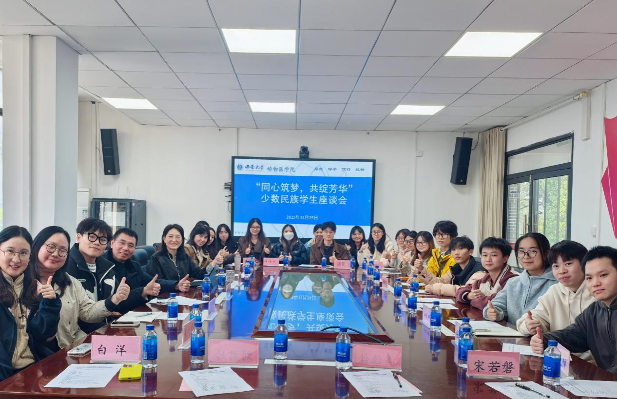 同学们也围绕学业发展与职业规划等话题坦诚交流。有同学希望了解如何将兽医专业所学服务于民族地区畜牧业发展,也有同学咨询了少数民族学生在升学方面的政策支持。与会老师认真倾听、详细记录,并逐一回应。宋振辉副院长鼓励大家坚定理想信念,将个人成长融入国家发展,珍惜在校时光,夯实专业基础,为未来服务兽医事业积蓄力量。